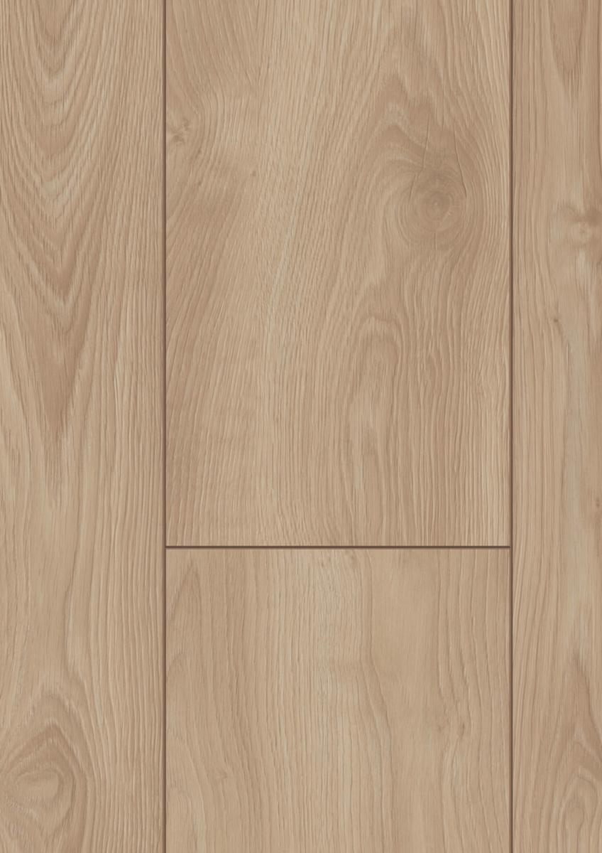 Scopri un pavimento laminato che unisce la bellezza del design contemporaneo alla solidità delle alte prestazioni. Le sue grandi tavole con fuga su tutti e quattro i lati ricreano l’effetto autentico del legno naturale, donando profondità e carattere a qualsiasi ambiente.